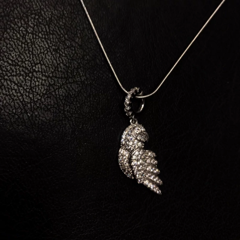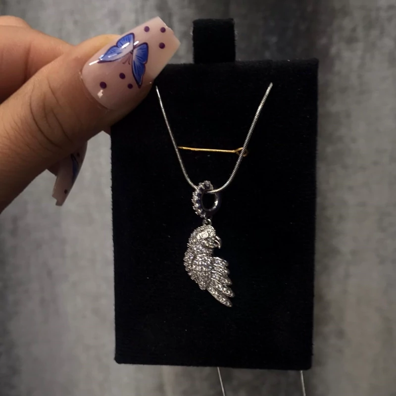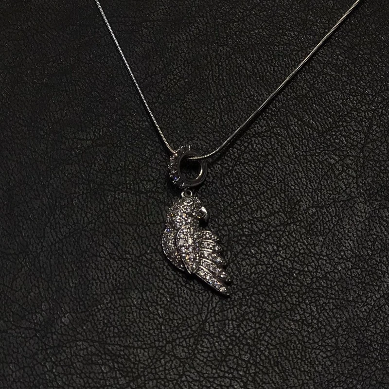 حراج پلاک و زنجیر دخترانه مدل طوطی ژوپینگ اورجینال فول نگین رنگ ثابت مناسب استفاده روزمره