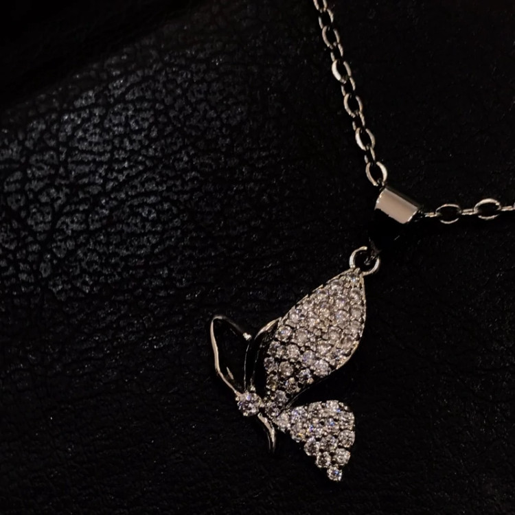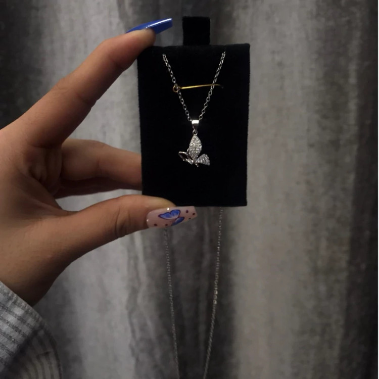 حراج زنجیر و پلاک دخترانه پروانه نگین دار رنگ ثابت آبکاری فوق العاده مناسب استفاده روزمره