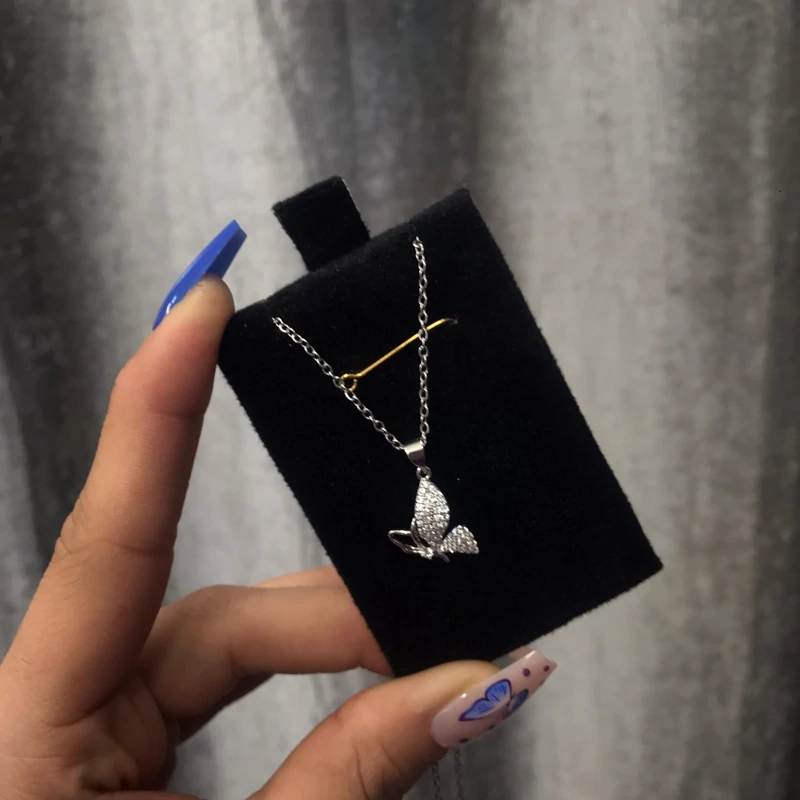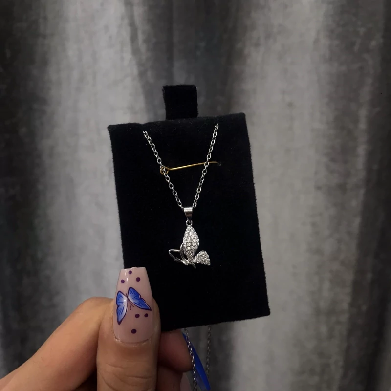 حراج زنجیر و پلاک دخترانه پروانه نگین دار رنگ ثابت آبکاری فوق العاده مناسب استفاده روزمره