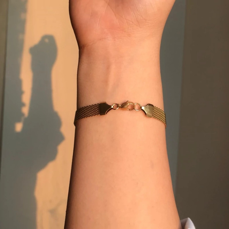 دستبند استیل طلایی رنگ ثابت زنانه بند حصیری با قفل طوطی
