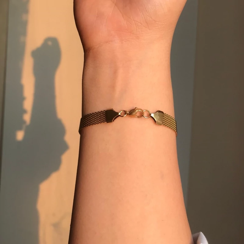 دستبند استیل زنانه با رنگ طلایی ثابت، انتخابی شیک و بادوام برای استفاده روزمره و مجلسی. این مدل با بند حصیری پهن 1 سانتی طراحی شده که جلوهای خاص و ترند به استایل شما میدهد. قفل طوطی مقاوم، استفاده از این دستبند را راحت و ایمن کرده است. ویژگیها: ✔ جنس: استیل ضد حساسیت ✔ رنگ: طلایی رنگ ثابت ✔ عرض بند: 1 سانت ✔ نوع قفل: طوطی ✔ مناسب هدیه و استفاده روزانه این دستبند برای خانمهایی که به اکسسوریهای مینیمال و باکیفیت علاقه دارند، گزینهای عالی است.