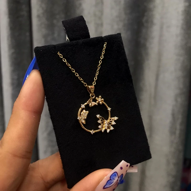 پلاک و زنجیر زنانه با آبکاری طلا و طراحی ظریف حلقه دور پروانه نگیندار، انتخابی شیک و دخترانه برای استایل روزمره و مجلسی. نگینهای ثابت و براق این مدل جلوهای خاص به گردن شما میدهد و در کنار زنجیر استیل باکیفیت، دوام و زیبایی را همزمان فراهم میکند. ویژگیها: ✔ جنس پلاک: آبکاری طلا ✔ طرح: پروانه نگیندار با حلقه ✔ نگین: ثابت و براق ✔ جنس زنجیر: استیل ✔ مناسب هدیه و استفاده روزانه 📦 ارسال سریع و بستهبندی مناسب هدیه